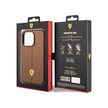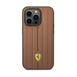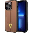 İphone Uyumlu 14 Pro Max Kılıf Ferrari Lisanslı Deri Yüzey Metal Logolu Şerit Tasarımlı Kapak Kahverengi