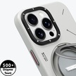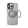 iPhone Uyumlu 15 Pro Kılıf Magsafe Şarj Özellikli 360 Standlı Deri Desenli Youngkit Tech Leather Serisi Gri