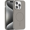 İphone Uyumlu 15 Pro Kılıf Magsafe Şarj Özellikli Silikon Kapak Ruby Gri