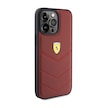 İphone Uyumlu 15 Pro Max Kılıf Ferrari Lisanslı Deri Dikişli Arka Yüzey Metal Logo Tasarımlı Kapak Kırmızı