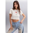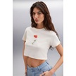 IRMA 100% Pamuk Kadın Crop Vanilya T-Shirt