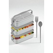 İronika 1260 Ml 3 Katlı Kapaklı Çatal Bıçaklı Beslenme Kutusu Lunch Box Beslenme Kabı - Gri Gri