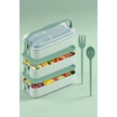 İronika 1260 Ml 3 Katlı Kapaklı Çatal Bıçaklı Beslenme Kutusu Lunch Box Beslenme Kabı - Yeşil Yeşil