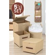 İronika Jüt Kumaş Dolap İçi Organizer Oyuncak Kutusu Eşya Çamaşır Saklama Sepeti Düzenleyici Kutu 5li Set Kahverengi