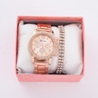 İş Çelik Bantlı Elmas Bayan Saati İmitasyon Kuvars Saat Şık Gündelik Gül Altın + Çift Sıra Hediye Kutusu Olmadan Diğer