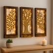 Işıklı Ahşap Çerçeveli 3 Lü Ağaç Motifli Duvar Dekor Seti