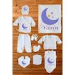 İsim Baskılı %100 Pamuk Baskılı 10 Lu Organik Erkek Bebek Hastane Çıkışı Beyaz