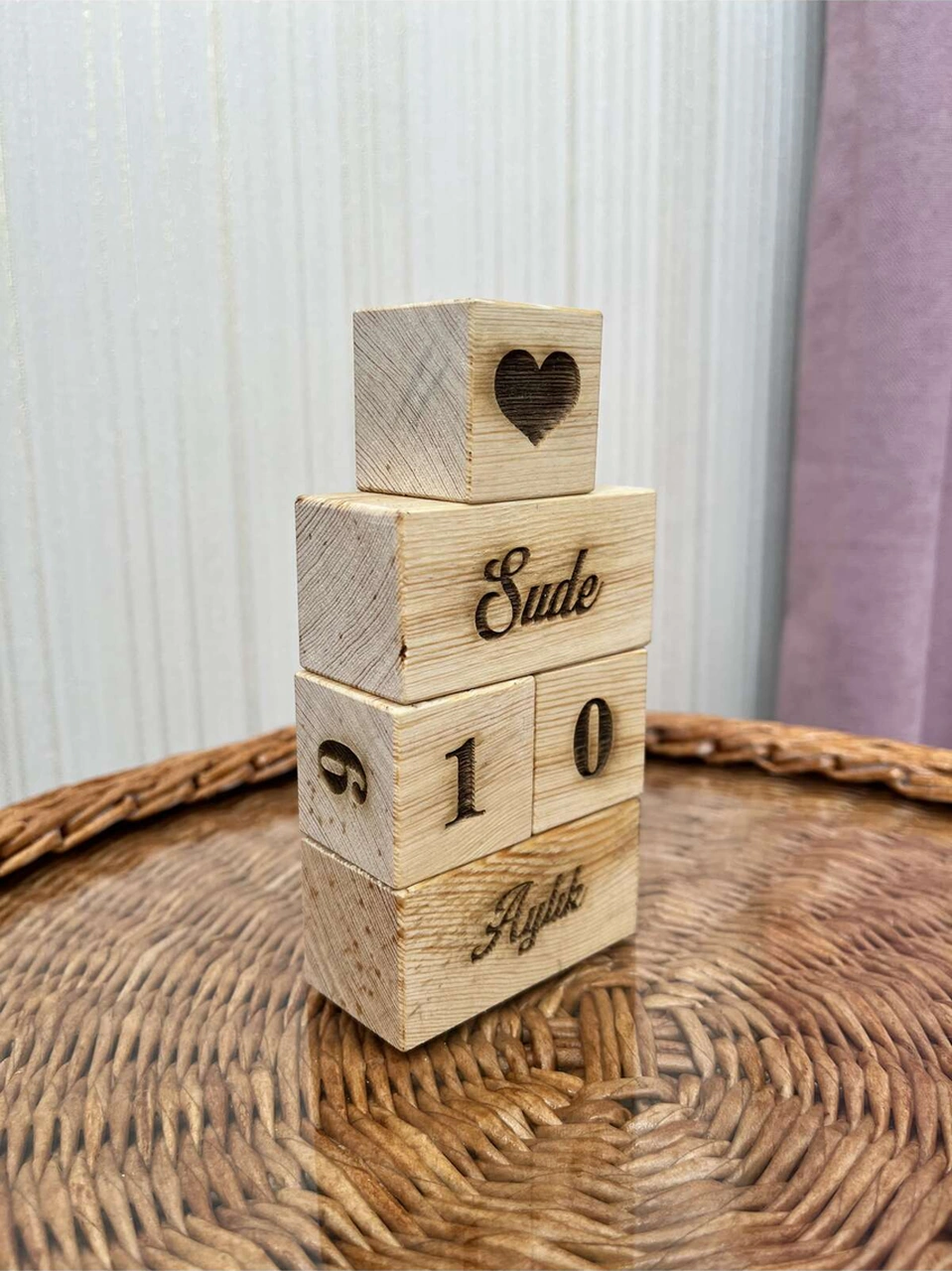 İsimli Bebek Anne Anı Küpü Dekor Türkçe 5 Li Set Isimli Ahşap Bebek Anı Küpleri