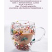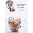Isıya Dayanıklı Borosilikat Çift Çidarlı Çiçekli Bardak Çiçekli Kahve Sunum Bardağı 250 Ml