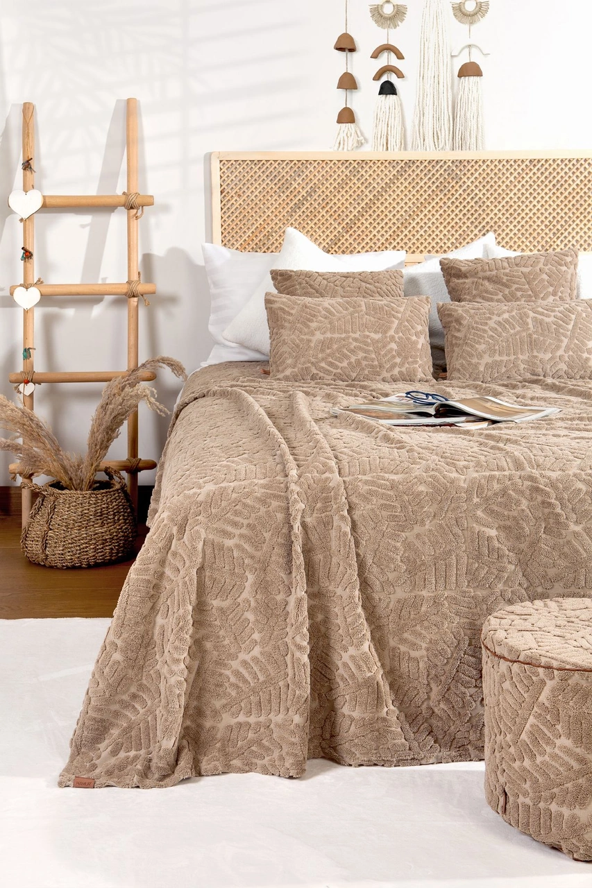 İskandinav Yatak Örtüsü Seti Çift Kişilik Set Bohem Punch Panç Desen Forest Natural Renkli