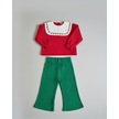 İşlemeli Yaka Kırmızı Badi Ve Fitilli Yeşil Eşofman Altı Kız Çocuk Alt Üst Takımı Kırmızı