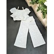 İspanyol Paça Pantolonlu Keten Kız Çocuk Takım Beyaz