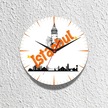 İstanbul Tasarımlı Duvar Cam Saati Beyaz