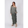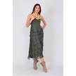 İtalyan 2 Beden Ince Gösteren Kat Kat Ipek Etek & Straplez Elbise Haki