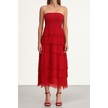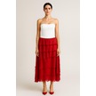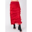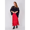 İtalyan 2 Beden Ince Gösteren Kat Kat Ipek Etek & Straplez Elbise Kırmızı