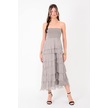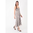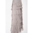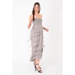 İtalyan 2 Beden Ince Gösteren Kat Kat Ipek Etek & Straplez Elbise Vizon
