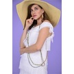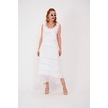 Italyan 2 Beden İnce Gösteren Kat Kat Kolsuz Ipek Elbise-8769 Beyaz