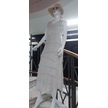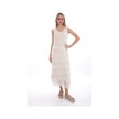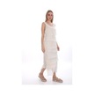 Italyan 2 Beden İnce Gösteren Kat Kat Kolsuz Ipek Elbise-8769 Ekru