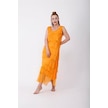 Italyan 2 Beden İnce Gösteren Kat Kat Kolsuz Ipek Elbise-8769 Oranj