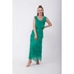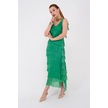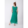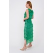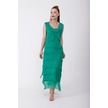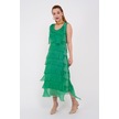 Italyan 2 Beden İnce Gösteren Kat Kat Kolsuz Ipek Elbise-8769 Yeşil