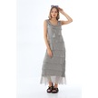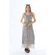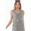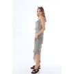 Italyan 2 Beden İnce Gösteren Kat Kat Kolsuz Ipek Elbise BEJ