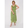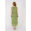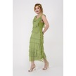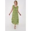 Italyan 2 Beden İnce Gösteren Kat Kat Kolsuz Ipek Elbise Fıstık Yeşili