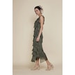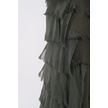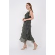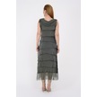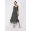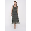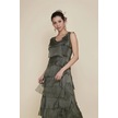 Italyan 2 Beden İnce Gösteren Kat Kat Kolsuz Ipek Elbise Koyu Haki