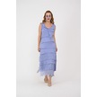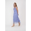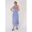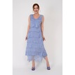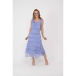 Italyan 2 Beden İnce Gösteren Kat Kat Kolsuz Ipek Elbise Mavi