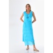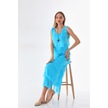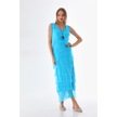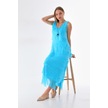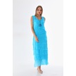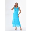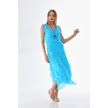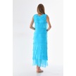 Italyan 2 Beden İnce Gösteren Kat Kat Kolsuz Ipek Elbise Turkuaz