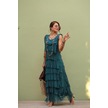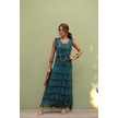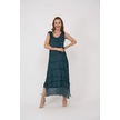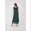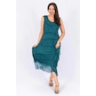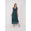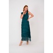 Italyan 2 Beden İnce Gösteren Kat Kat Kolsuz Ipek Elbise Zümrüt Yeşili