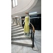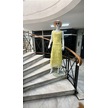 Italyan 2 Beden İnce Gösteren Kat Kat Sıfır Kol İpek Elbise-8769 Açık Sarı