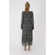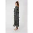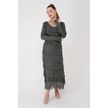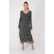 Italyan 2 Beden İnce Gösteren Kat Kat Uzun Kol Taşlanmış İpek Elbise Koyu Haki