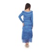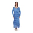 Italyan 2 Beden İnce Gösteren Kat Kat Uzun Kol Taşlanmış İpek Elbise Mavi