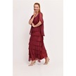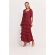 İtalyan 2 Beden Ince Gösteren Yarım Kol Kat Kat Ipek Elbise-8794 Bordo