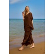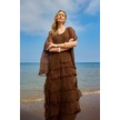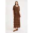 İtalyan 2 Beden Ince Gösteren Yarım Kol Kat Kat Ipek Elbise-8794 Kahverengi
