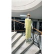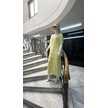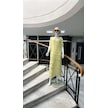İtalyan 2 Beden Ince Gösteren Yarım Kol Kat Kat Ipek Elbise-8794 Sarı