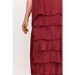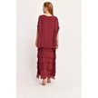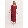 İtalyan 2 Beden İnce Gösteren Yarım Kol Kat Kat Ipek Elbise Bordo