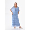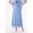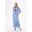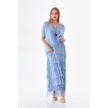 İtalyan 2 Beden İnce Gösteren Yarım Kol Kat Kat Ipek Elbise İndigo Mavi İndigo - Mavi