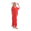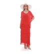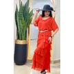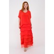 İtalyan 2 Beden İnce Gösteren Yarım Kol Kat Kat Ipek Elbise Kırmızı