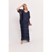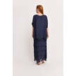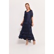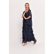 İtalyan 2 Beden İnce Gösteren Yarım Kol Kat Kat Ipek Elbise Lacivert