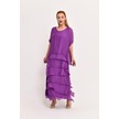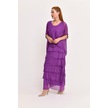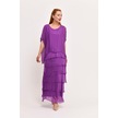 İtalyan 2 Beden İnce Gösteren Yarım Kol Kat Kat Ipek Elbise Mor