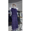 İtalyan 2 Beden İnce Gösteren Yarım Kol Kat Kat Ipek Elbise Mürdüm