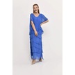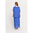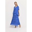 İtalyan 2 Beden İnce Gösteren Yarım Kol Kat Kat Ipek Elbise Saks Mavisi