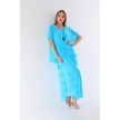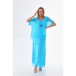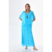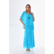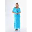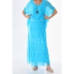İtalyan 2 Beden İnce Gösteren Yarım Kol Kat Kat Ipek Elbise Turkuaz