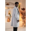 İtalyan Geniş Yaka Oversize Bol Kesim Salaş Uzun Kaban Gri