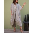 Italyan Ipek Detaylı Oversize Kaftan & Bluz-8711 Vizon