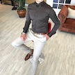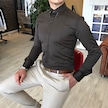 Italyan Kesim Slim Fit Erkek Saten Zincirli Gömlek Kahverengi T48