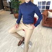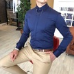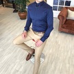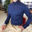 Italyan Kesim Slim Fit Erkek Saten Zincirli Gömlek Lacivert T4802