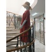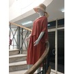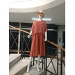 İtalyan Müslin Keteni Üstü File Bluzlu Astarlı Tek Parça Elbise Gül Kurusu