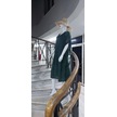 İtalyan Müslin Keteni Üstü File Bluzlu Astarlı Tek Parça Elbise Zümrüt Yeşili